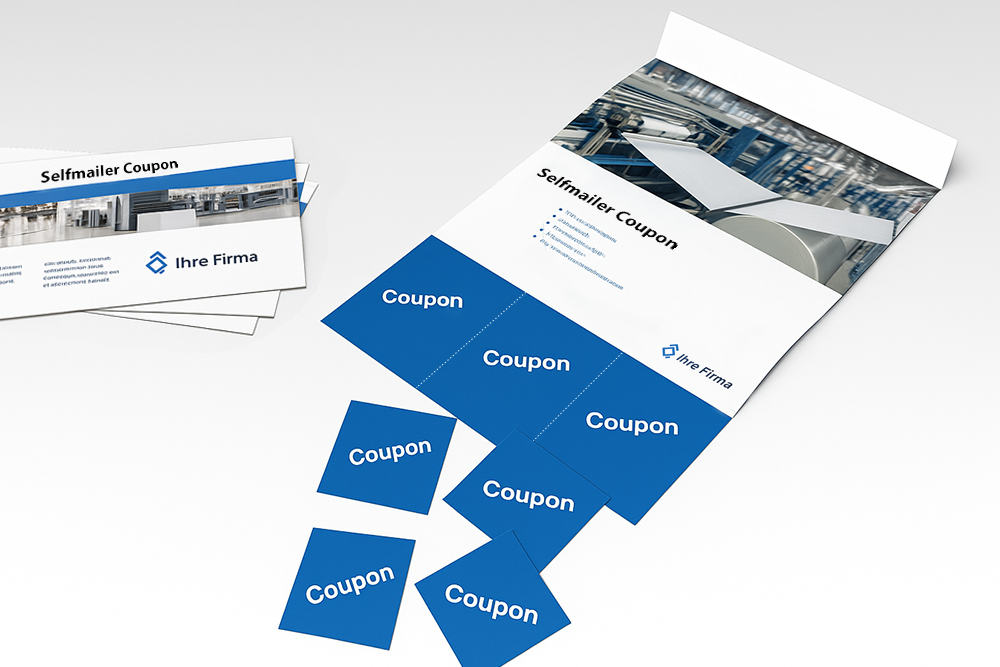 Mit dem Selfmailer Coupon steigern Sie mühelos Ihren Umsatz, animieren Ihre Zielgruppe zum Kauf und beschleunigen die Kaufentscheidung.❦
