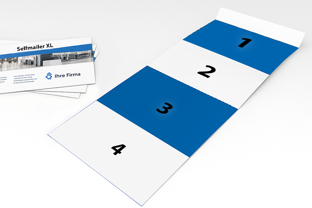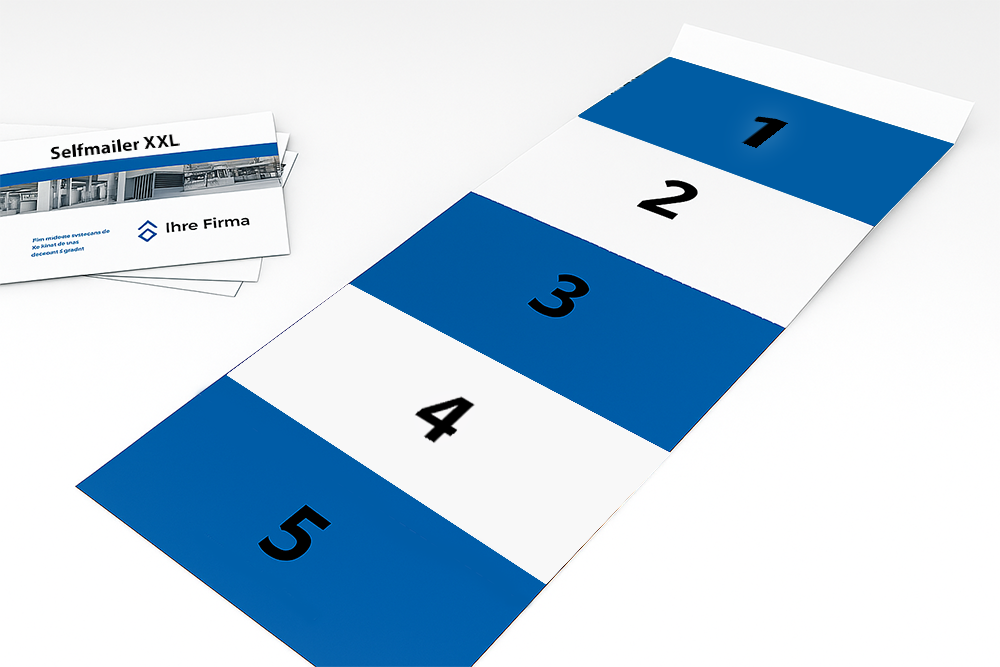 Mehr Gestaltungsfläche und ein großzügiges Format – das alles bietet Ihnen der Self Mailer XL. Werbewirksam und aufmerksamkeitsstark erregt dieser Mailer schon am Briefkasten großes Aufsehen.
